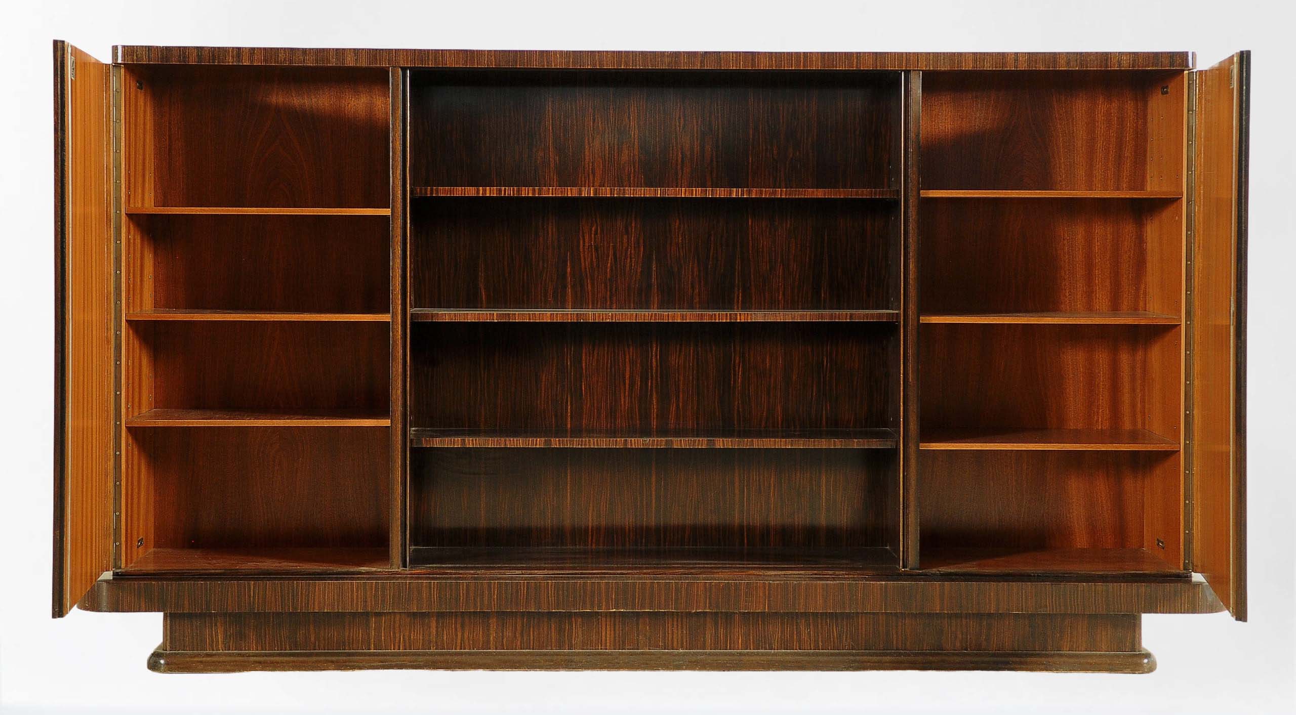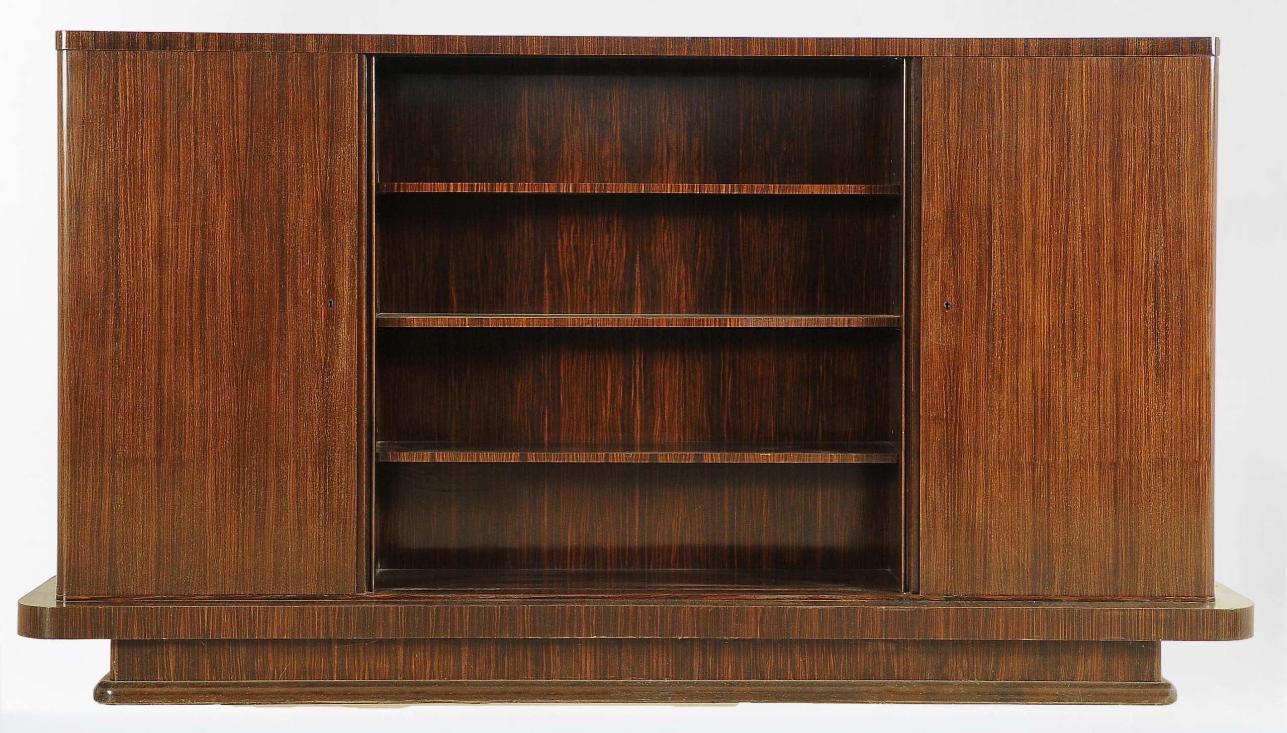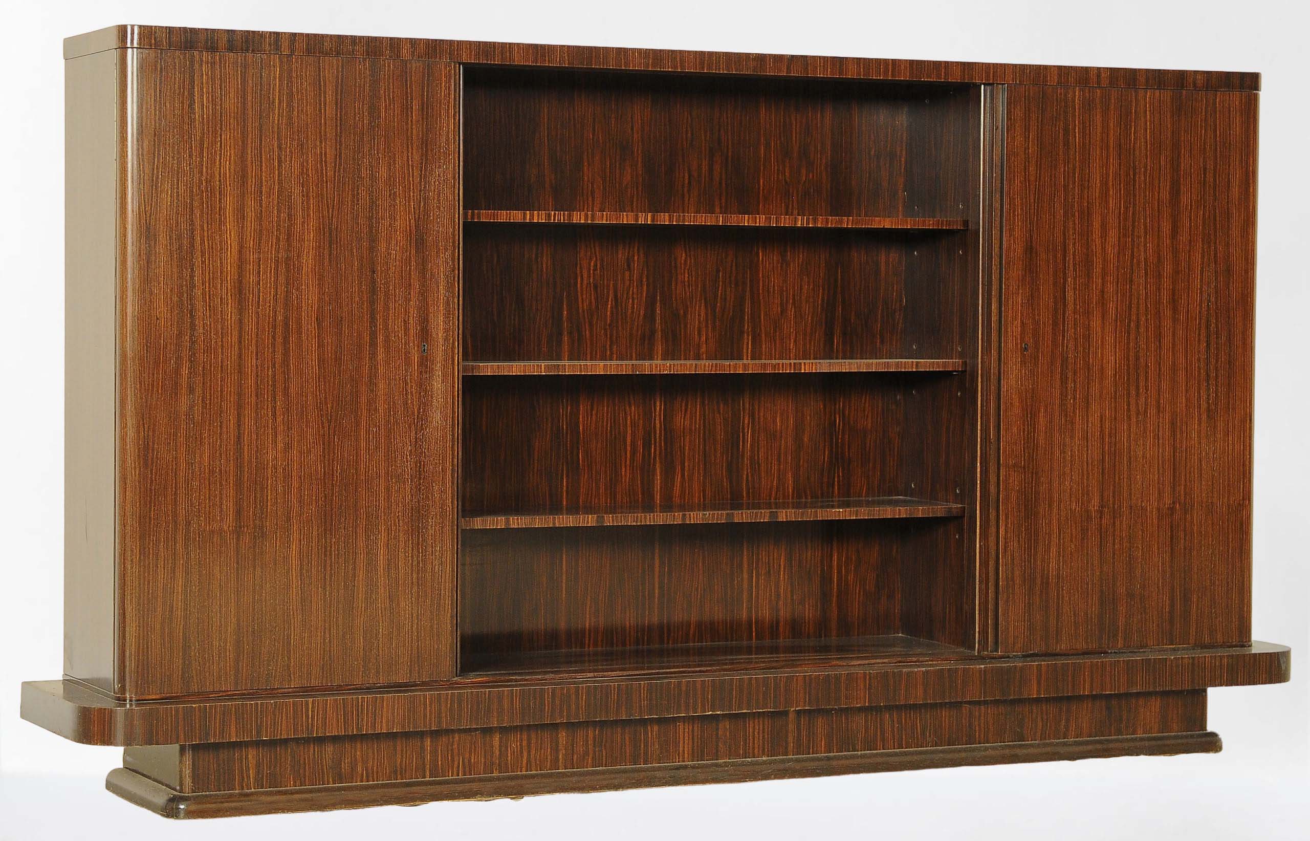Hier bieten wir Ihnen ein fantastischen Bücherschrank aus der Bauhaus Epoche an. Gefertigt um 1930 begeistert der Schrank durch seine eindrucksvolle architektonische Gliederung, der klaren Linienführung der kubischen Form, sowie durch das faszinierende Furnierbild des hochwertigen Palisanderholzes, welches hier massiv und furniert verwendet wurde.