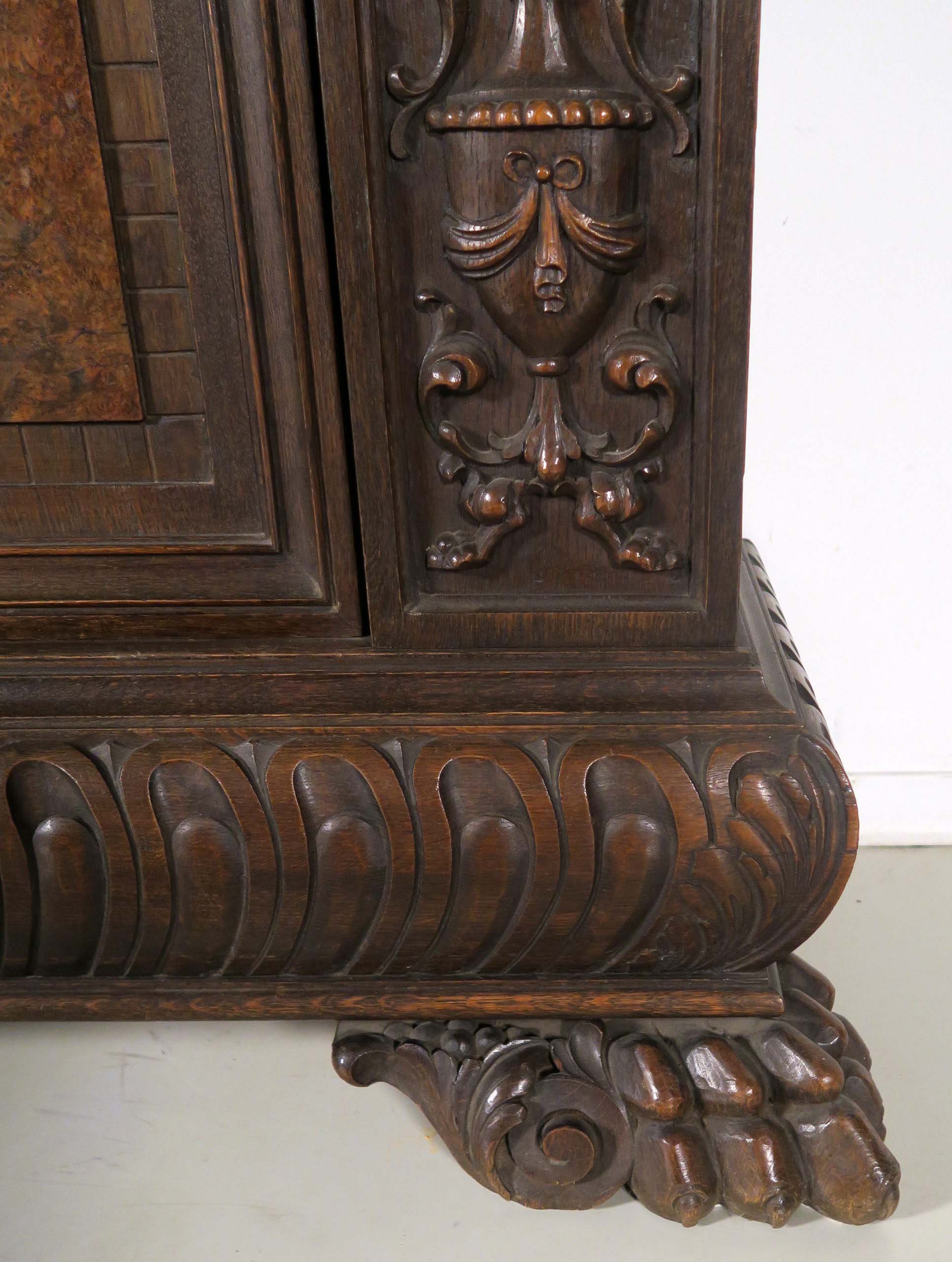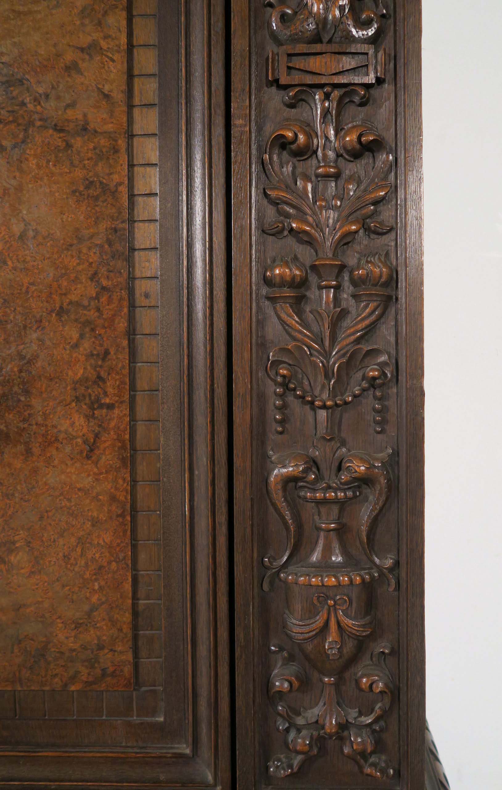 Hier bieten wir Ihnen einen grandiosen Bücherschrank aus der Neorenaissance an. Er wurde um 1920 aus feinstem Nussbaum, massiv und furniert gefertigt. Er begeistert durch seine vielen, meisterlichen Schnitzereien, seine außergewöhnliche Architektur und seine hohe Qualität.