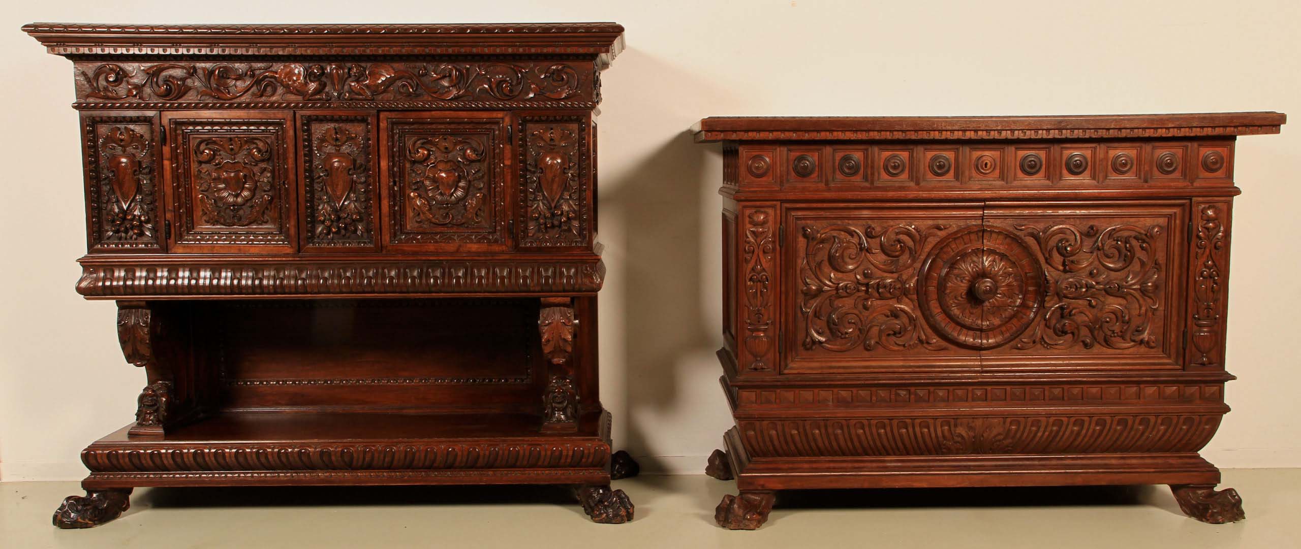 Hier präsentieren wir Ihnen ein sensationelles Highboard der Neorenaissance mit mannigfaltigen, kunstvollen Merkmalen: