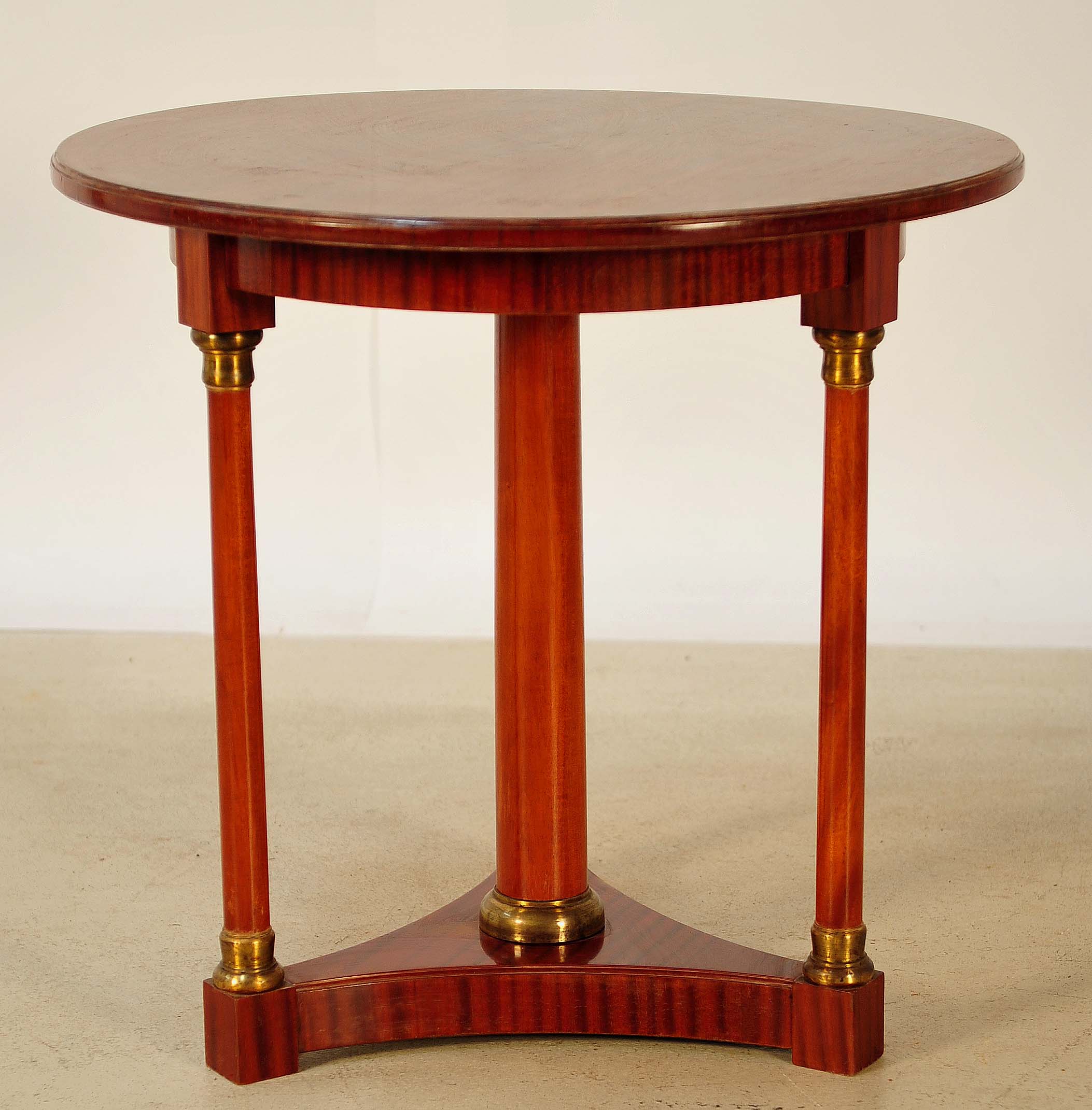 Charakteristisch sind die vier Säulenbeine die mit hübschen Metallkapitellen und Basen aus Messing versehen wurden. Sie münden oben und unten in kubische Elemente, diese wiederum unten auf einem dreieckigen und nach innen gebogenen Fuß ruhen.