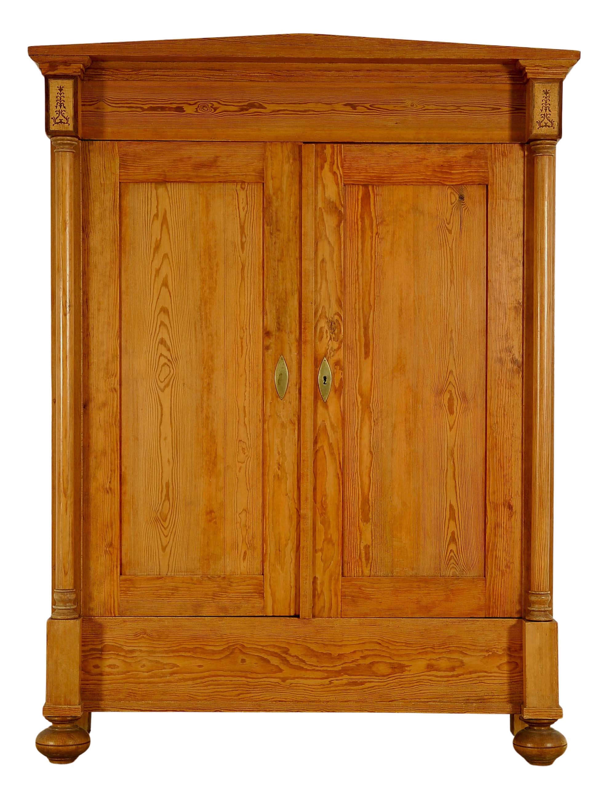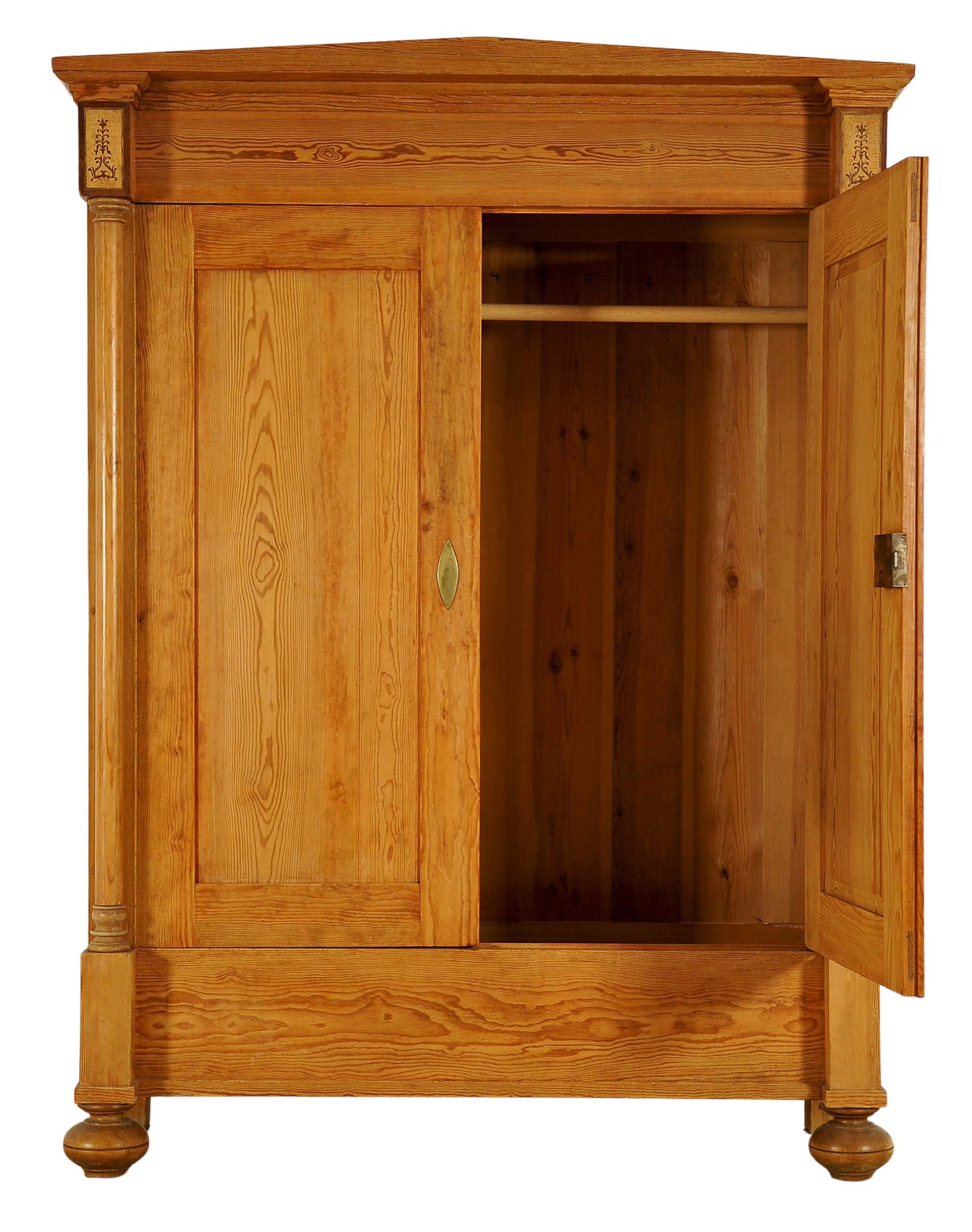 Jugendstil Weichholz Dielenschrank / Kleiderschrank mit Schinkeldach.