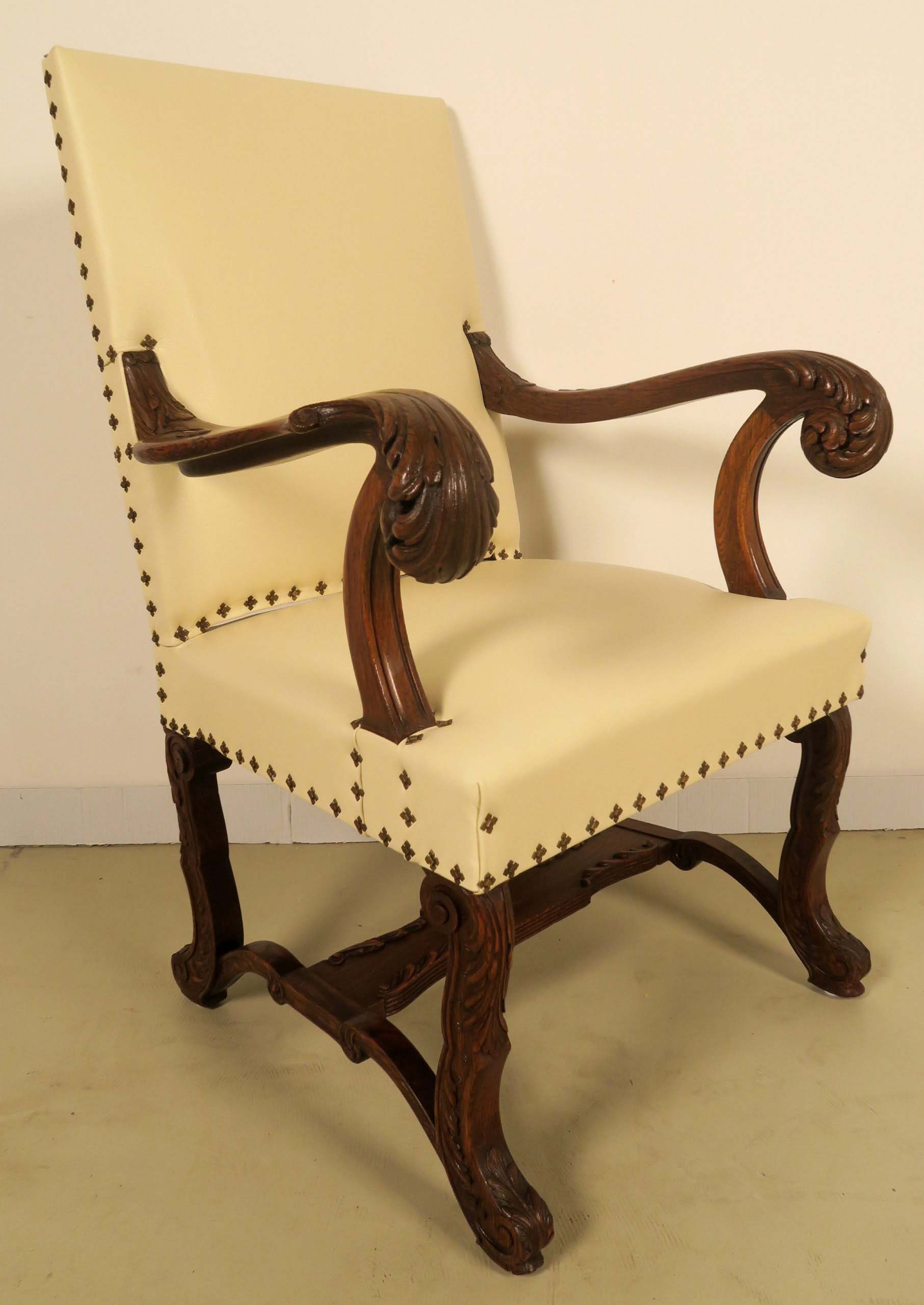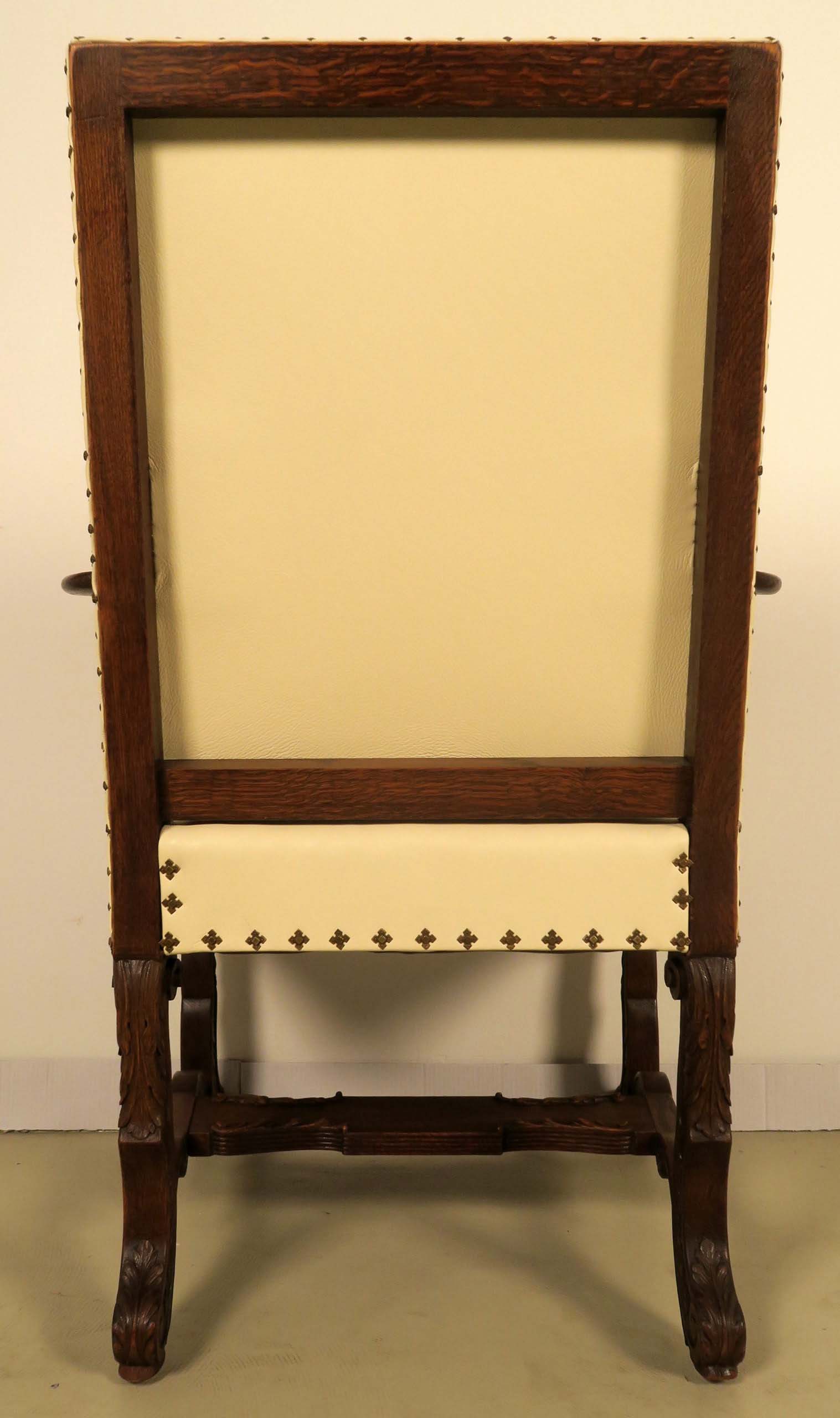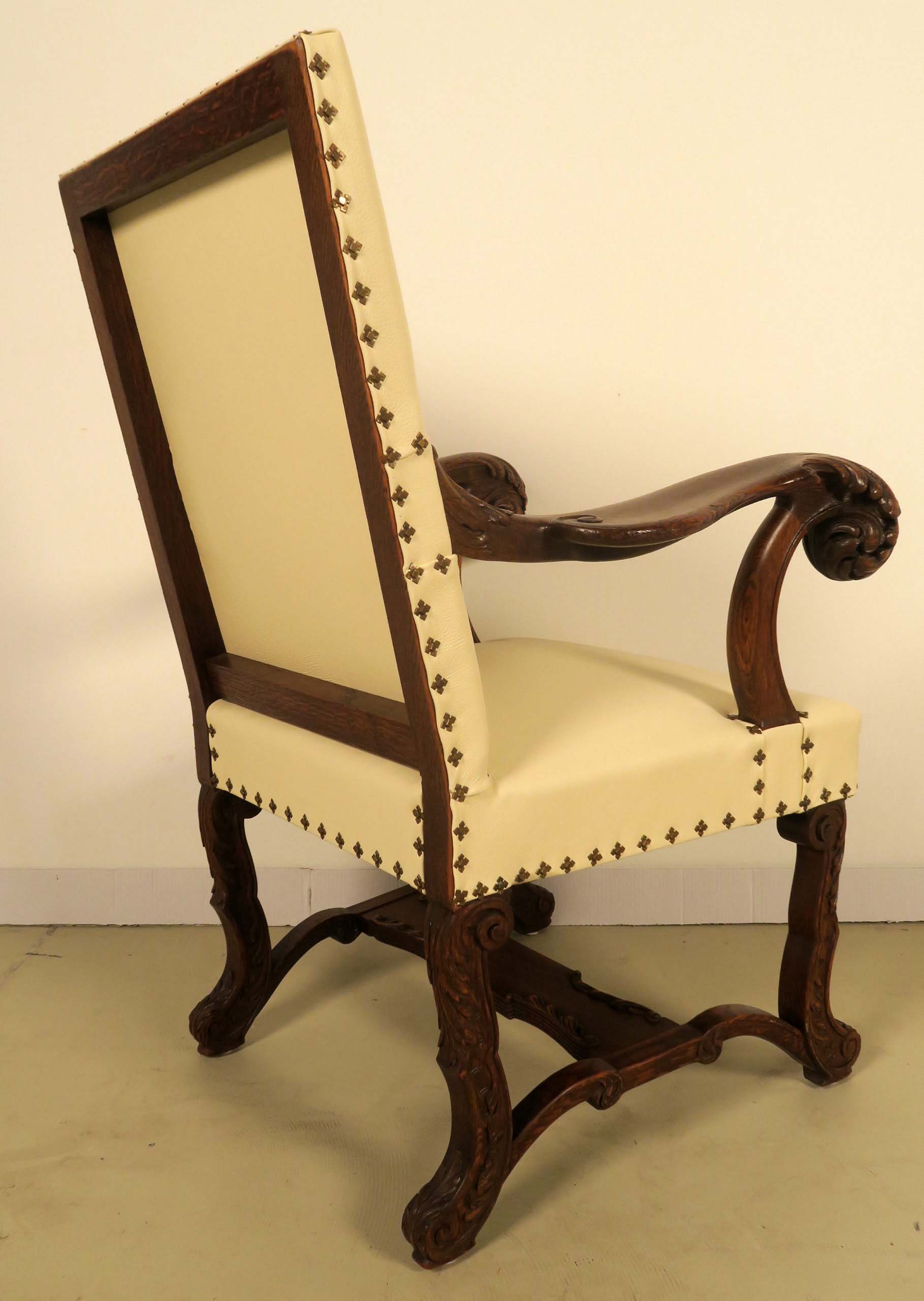 Hier können wir Ihnen einen eindrucksvolle Armlehner aus dem Historismus anbieten, der um 1880 aus bester Eiche, massiv und furniert, gefertigt wurden und neben der klassischen Architektur vor allem durch seine meisterlichen Holzarbeiten begeistert.