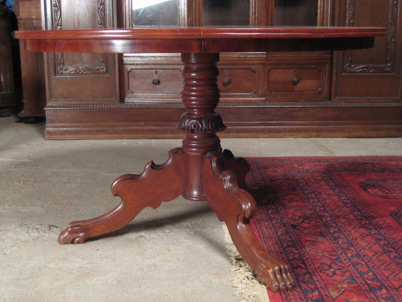 Äußerst repräsentativer Esstisch aus der Louis Philippe Epoche, der durch hohe Qualität und sagenhafte Ausstrahlung zu begeistern weiß. Die elegant formberuhigte Interpretation wird hier meisterlich mit eindrucksvollen Details kombiniert. Der Tisch wurde um 1880 aus bestem Mahagoni, massiv und furniert, gefertigt.